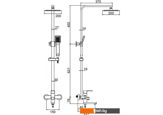 | Диаметр (ширина) верхнего душа | 200 мм |