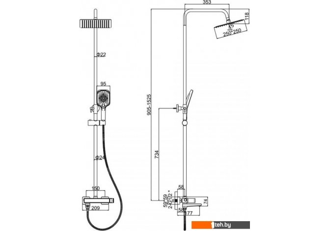 | Вылет верхнего душа | 353 мм |