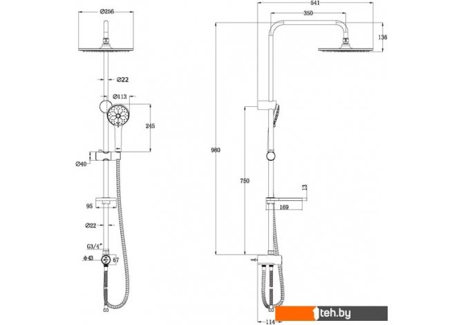 | Диаметр (ширина) верхнего душа | 256 мм |