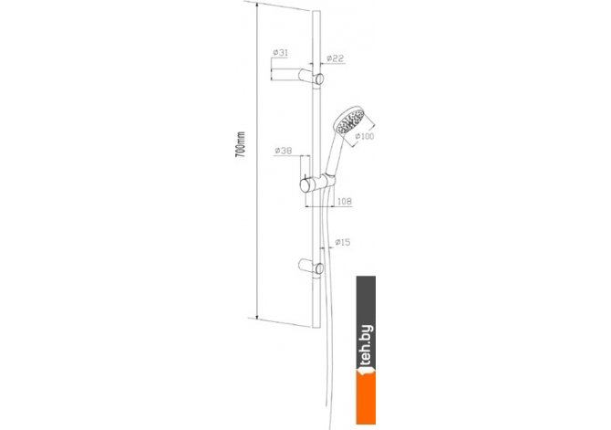 | Диаметр (ширина) ручного душа | 100 мм |