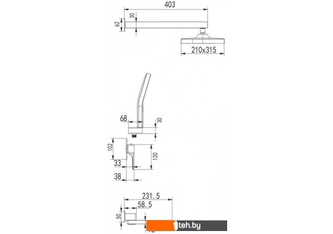 | Диаметр (ширина) верхнего душа | 315 мм |