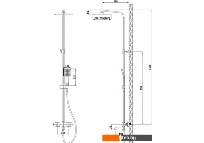 | Диаметр (ширина) верхнего душа | 250 мм |