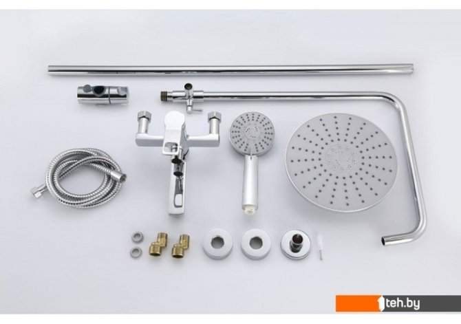 | Комплектация | верхний душ, штанга, держатель лейки, шланг, смеситель, гигиенический душ (лейка) |