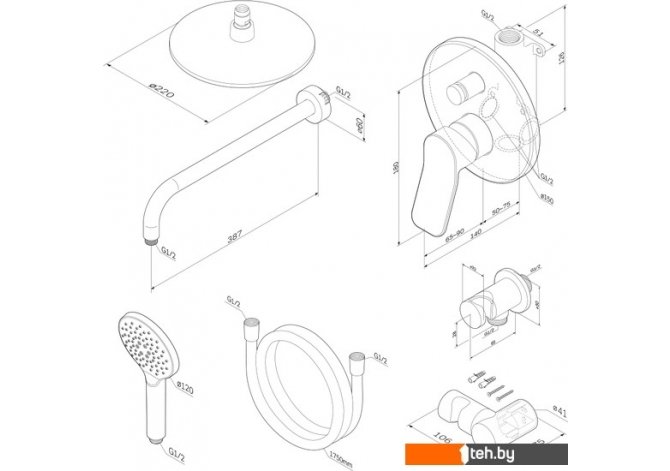 | Диаметр (ширина) верхнего душа | 220 мм |