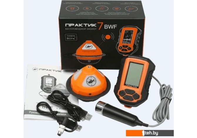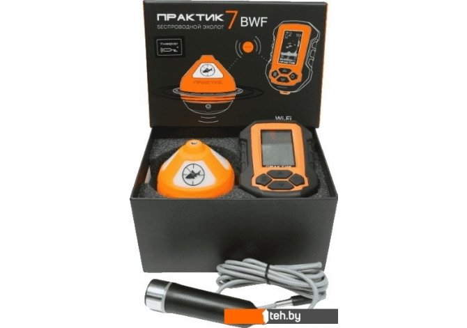 | Информация | Предназначен для обнаружения перспективных мест для рыбалки, поиска рыбы и исследования толщи воды.«Практик 7 BWF Универсал» - это 3 варианта использования:1. Беспроводной датчик "Маяк" и смартфон/планшет (идеален для летней рыбалки, а также зимой);2. Беспроводной датчик "Маяк" и блок 7 BWF (идеален для летней рыбалки, а также зимой);3. Блок 7 BWF и проводной датчик (идеален для зимней рыбалки, а также летом).Беспроводной датчик-преобразователь "Маяк" транслирует информацию на блок "7 BWF" или смартфон/планшет посредством WI-FI-соединения.При использовании эхолота со смартфоном сначала необходимо установить на мобильное устройство соответствующее программное обеспечение - бесплатное приложение "Эхолоты Практик 7" для платформ Android или IOS.Что показывает Практик 7 BWF:- глубину водоема;- рельеф и структуру дна;- плотность грунта;- наличии рыбы в предполагаемом месте рыбалки;- наличие иных объектов в водоеме (коряги, водоросли и пр.)Дополнительная функция при работе эхолота со смартфоном/планшетом - КАРТОГРАФИЯ, позволяющая- записывать карты глубин;- дополнять и уточнять уже записанные карты новыми треками (наслоение карт);- корректировать уровень воды при наслоении карты;- отмечать на карте интересные места во время записи и просмотра карты;- строить маршруты до отмеченных точек;- отправлять друзьям карты, треки и отметки. |