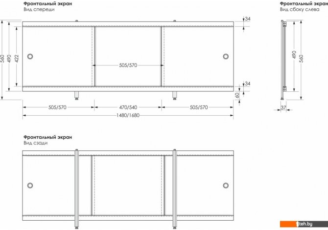 | Под ванну/экран (для универсальных) | длиной 150 см |