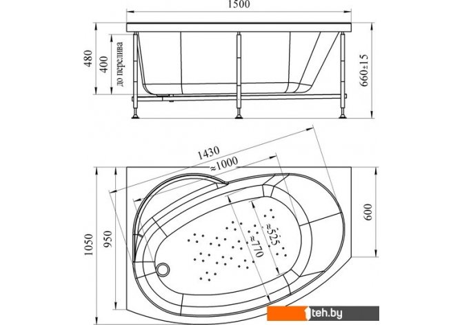 | Под ванну/экран (для не универсальных) | шириной 95 см |