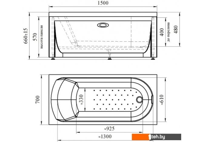 | Под ванну/экран (для не универсальных) | шириной 70 см |