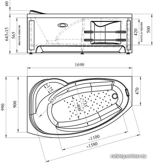 Экраны под ванну Vannesa София 169 R 2-21-0-2-0-223 (фронтальный)