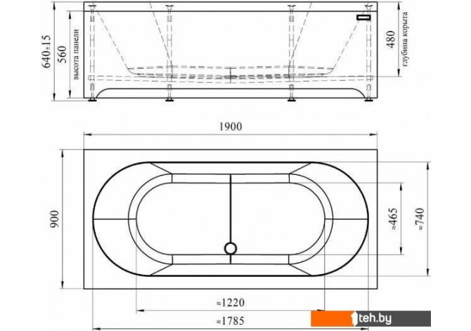 | Под ванну/экран (для не универсальных) | длиной 190 см |