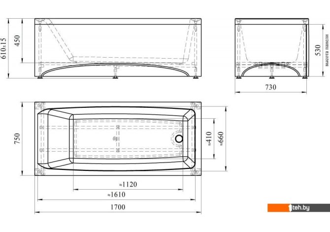 | Под ванну/экран (для не универсальных) | длиной 170 см |