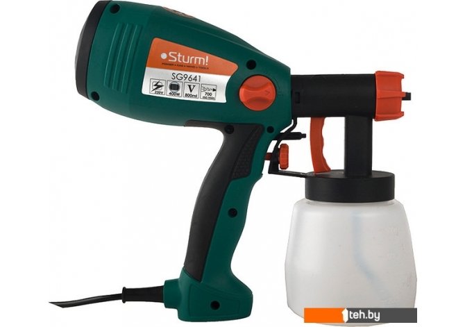 Фотографии, описание и технические характеристики модели Электрического краскораспылителя Sturm SG9641 взяты из открытых источников, официального сайта производителя или представительства Sturm в Республике Беларусь.