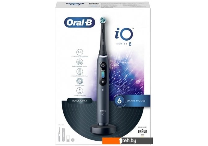 Фотографии, описание и технические характеристики модели Oral-B iO 8n (черный, 2 насадки) взяты из открытых источников, официального сайта производителя или представительства Oral-B в Республике Беларусь.