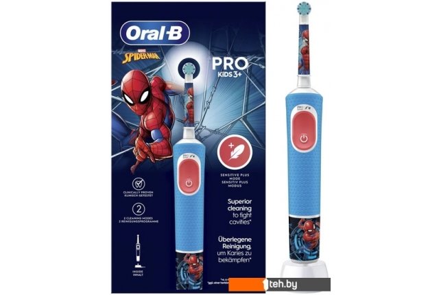 Фотографии, описание и технические характеристики модели Oral-B Vitality Pro 103 Kids Spiderman D103.413.2K взяты из открытых источников, официального сайта производителя или представительства Oral-B в Республике Беларусь.