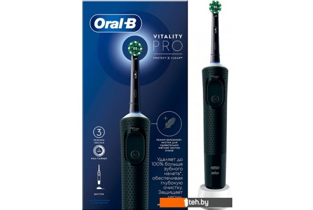 Фотографии, описание и технические характеристики модели Oral-B Vitality Pro D103.413.3 Cross Action Protect X Clean Black 4210201427100 (черный) взяты из открытых источников, официального сайта производителя или представительства Oral-B в Республике Беларусь.