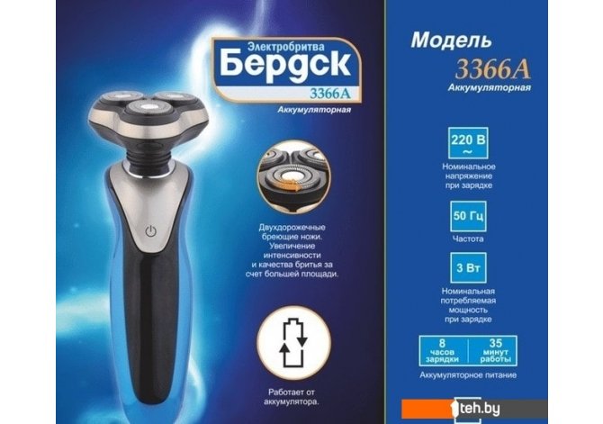 Фотографии, описание и технические характеристики модели электробритвы Электроприборы-БЭМЗ Бердск 3366A взяты из открытых источников, официального сайта производителя или представительства Электроприборы-БЭМЗ в Республике Беларусь.