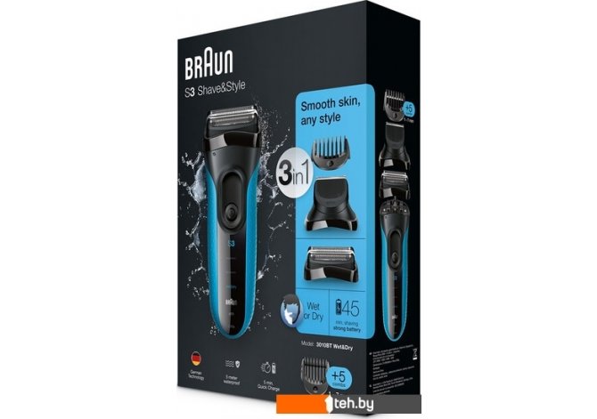 Фотографии, описание и технические характеристики модели электробритвы Braun Series 3 Shave&Style 3010BT Wet&Dry взяты из открытых источников, официального сайта производителя или представительства Braun в Республике Беларусь.