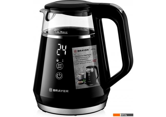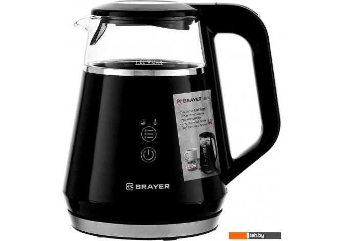 | Информация | - Максимальная мощность составляет 1100 Вт, а объём — 1 литр. - Удобное сенсорное управление. Корпус выполнен из высокопрочного термостойкого стекла с пластиковым покрытием Cool Touch, которое остаётся холодным даже при нагревании. - Функции кипячения и подогрева воды позволяют выбрать оптимальную температуру для разных сортов чая (от 40 до 100°С). - Возможность поддержания заданной температуры в течение 2 часов. - Автоматическое отключение при закипании воды и при отсутствии воды. |
