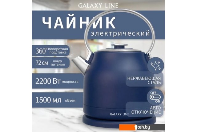 | Информация | ? Благодаря высокой мощности 2200 Вт чайник закипает за считанные минуты. Корпус чайника выполнен из нержавеющей стали. ? Данная конструкция позволяет долгое время сохранять питьевую воду горячей. ? Чайник автоматически отключается при закипании и при отсутствии воды. ? Нагревательный элемент у данной модели чайника скрытый и находится в дне. Сверху он закрыт пластиной из нержавеющей стали, которая защищает его от накипи, облегчает уход за ним и снижает шум при нагревании воды. ? Чайники Galaxy Line - cтильное решение для вашей кухни. |