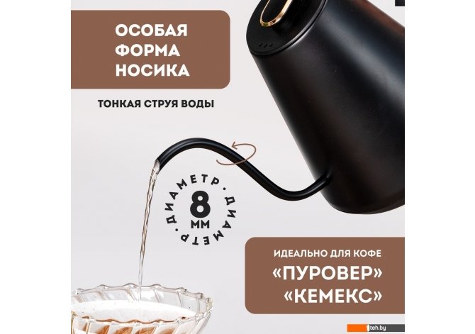 | Информация | - Чайник для заваривания кофе и чая GALAXY LINE GL0341 — незаменимый прибор для приготовления горячих напитков. - Мощность 1100 Вт и объем 1 литр обеспечивают быстрое и удобное приготовление. Три режима нагрева и ручная установка температуры от 40 до 100 °C позволяют нагревать воду до нужной температуры для разных сортов чая. Функции подогрева и поддержания температуры делают эксплуатацию чайника еще удобнее. - Чайник идеально подходит для заваривания кофе в воронках «пуровер» и «кемекс». Эргономичная ручка и компактный размер обеспечивают комфортное использование. Функция автоотключения при закипании и отсутствии воды гарантирует безопасность. Корпус из нержавеющей стали, съемная крышка и отсек для хранения шнура добавляют удобства. |