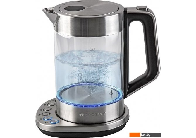 | Информация | Электрический чайник Endever KR-366G – это модель, которая поможет Вам наслаждаться чашечкой горячего чая или кофе в любое время дня! Вместительный и мощный - объем 1,7 литров и мощность 2200 Вт позволяют быстро вскипятить воду. Корпус выполнен из высокопрочного стекла, благодаря которому эта модель будет радовать Вас долгое время. К тому же, выбрав желаемую температуру - 40, 70, 90 или 100 градусов, вы сможете приготовить любимый напиток правильно и вкусно. Благодаря функции поддержания температуры, чайник KR-366G сохранит идеальную температуру воды в течение часа. Кнопочная панель управления со светодиодной подсветкой позволяет легко настроить температуру воды и поддержание температуры. И, конечно же, ваша безопасность всегда будет на первом месте - автоотключение при закипании и отсутствии воды гарантирует использование чайника KR-366G долгое время. А для тех, кто любит порядок и уют, чайник оснащен отсеком для хранения шнура, что облегчает его хранение без лишних помех. Облегчите свою жизнь с нашим элегантным и удобным чайником Endever KR-366G и балуйте себя идеальными напитками! |