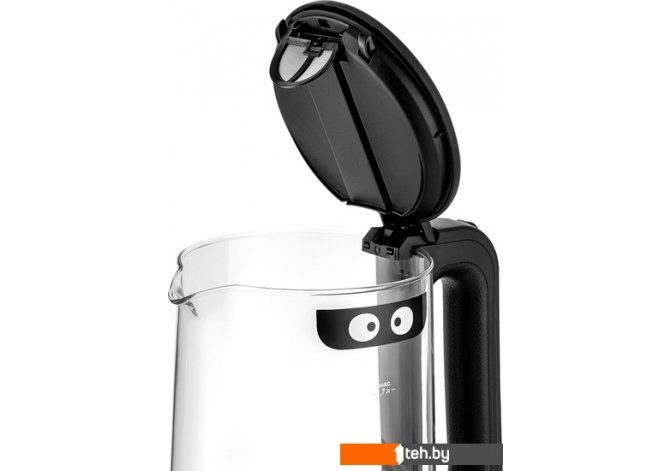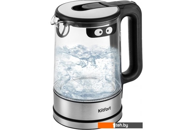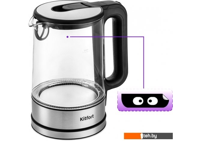 | Информация | Чайник Kitfort КТ-6128 выполнен из сочетания материалов - стекла, пластика, нержавеющей стали и кожзаменителя. Мерная шкала нанесена на прозрачную часть корпуса. За счёт минималистичного дизайна он идеально впишется в любой интерьер. Кнопка открывания крышки расположена на самой крышке. Если кнопку потянуть в сторону ручки, крышка легко поднимается вверх. Для закрытия крышки нужно просто надавить на неё и опустить вниз до щелчка. Ручка чайника пластиковая с вставкой из кожзаменителя на внутренней части, что позволяет комфортно и удобно держать чайник в руке, не боясь, что он выскользнет. При включении чайника по периметру дна загорается подсветка, которая является индикатором работы и одновременно художественно подсвечивает воду. С нашей техникой очень легко подружиться, потому что она не только лёгкая и функциональная, но и будто живая с весёлыми глазами. Никого не оставит равнодушным. В любой момент вы можете отклеить этот стикер без вреда для поверхности. |