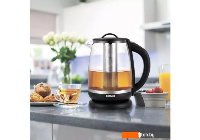 | Информация | Вместительный чайник ёмкостью 2 л Kitfort КТ-6145 может вскипятить воду или нагреть её до температуры 40, 70, 80 и 90 °С, что удобно при заваривании различных сортов чая, приготовлении кофе. Чайник также оснащён функцией поддержания температуры. На ручке чайника расположены: кнопка вкл/выкл, при удержании которой включается режим поддержания температуры, кнопка выбора температурных режимов работы и световые индикаторы, указывающие на выбранную температуру нагрева. Различные сорта чая (зелёный, чёрный, белый, улун, травяной) можно заваривать непосредственно в самом чайнике, пользуясь фильтром. Он крепится к крышке и легко моется после использования. Световой индикатор горит разными цветами в зависимости от выбранной t °С: 40 °С –зелёный; 70 °С – синий; 80 °С – жёлтый; 90 °С – фиолетовый, 100 °С – красный. Режим поддержания будет поддерживать температуру воды 85-100 °С в течение 2 часов. Съёмная крышка и широкое горлышко чайника облегчают доступ внутрь при его мойке и во время удаления накипи. А форма носика позволяет метко наливать воду независимо от количества воды в чайнике. Фильтр предотвращает от накипи. Корпус выполнен из стекла и пластика, подставка – из пластика, а крышка – из сочетания пластмассы и нержавеющей стали. Мерная шкала нанесена на прозрачную часть корпуса. Ёмкости 2 л хватит, чтобы заварить чай или вскипятить воду на большую семью! |