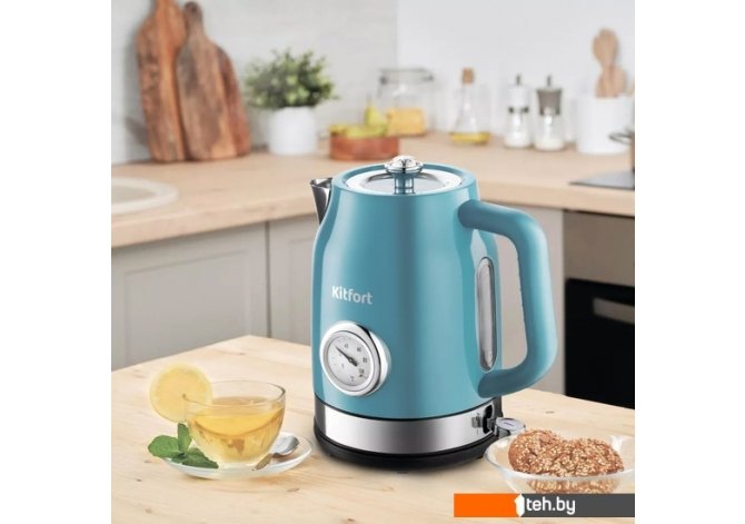 Информация | Мощный и вместительный чайник Kitfort КТ-6147 отлично подойдёт для тёплых встреч с семьёй и друзьями. Корпус чайника из нержавеющей стали. Крышка выполнена из нержавеющей стали с сочетанием пластика, а подставка выполнена из пластика. Благодаря стильному термометру в винтажном исполнении вы сможете правильно заварить напитки, для которых требуется определённая температура воды. Например, зелёный чай, белый чай или другие напитки. За один раз в чайнике можно вскипятить до 1,7 л воды. Этого хватит, чтобы приготовить горячие напитки на большую семью! Мерная шкала позволяет легко следить за уровнем воды. |