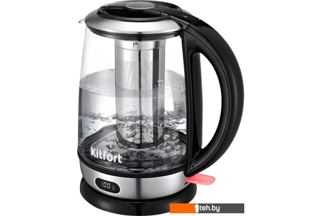 | Информация | Электрический чайник КТ-6155 может не только вскипятить воду, но и нагреть её до температур: 70, 80, 85, 90, 95 и 100°С. Возможность выбрать температуру нагрева в сочетании с встроенным фильтром позволяют заваривать любимые сорта чая прямо в чайнике. На корпусе чайника расположена сенсорная панель управления. Кнопка «Выбор температуры» позволяет задать температуру нагрева 70, 80, 85, 90, 95 и 100 оС. На дисплее отображается текущая температура воды, а при установке температуры — температура нагрева. При повороте малой крышки против часовой стрелки вы можете достать заварочный фильтр и заполнить его. Чтобы зафиксировать фильтр в чайнике, нужно вставить малую крышку с фильтром в большую крышку и повернуть по часовой стрелке. Фильтр с чаем зафиксирован! В чайнике КТ-6155 есть встроенный фильтр для заварки чая, а также предустановлены температуры заваривания для популярных сортов чая. Вам нужно только засыпать чайные листья в корзину, залить воду и выбрать необходимую температуру. |