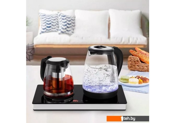 | Информация | ? Стильный и функциональный, чайный набор Kitfort КТ-6181 состоит из чайника на 2 литра, кувшина для заварки объемом 1,2 литра с фильтром и базы. Набор идеально подходит для вскипячивания воды и приготовления чая или кофе за несколько мгновений! ? На базе расположены сенсорные кнопки для выбора температурного режима и регулировки тепла. Каждое нажатие на кнопку сопровождается звуковым сигналом, а на дисплее отображается выбранная температура воды в кувшине. ?? Автоматический режим поддержания тепла для чая - 80°C, для кофе - 70°C. Ручная настройка для чая возможна от 75°C до 85°C, для кофе - от 60°C до 80°C с шагом 1°C. Прибор будет поддерживать выбранный режим в течение четырех часов, после чего автоматически отключится. ? Кувшин для заварки изготовлен из термостойкого стекла и имеет съемный фильтр для чая или кофе. На базе расположен скрытый нагревательный элемент с функцией поддержания тепла. ? Корпус чайника выполнен из стекла с пластиковой вставкой. Крышка сделана из нержавеющей стали и пластика, открывается легко с помощью кнопки сверху. Мерная шкала находится на боковой стороне стеклянного корпуса. ? Центральный контакт на базе обеспечивает вращение на 360°, что позволяет ставить чайник в любом положении. Помимо этого, чайник оборудован защитой от перегрева и от включения без воды. Наслаждайтесь приятным чаепитием в компании с чайным набором КТ-6181! |