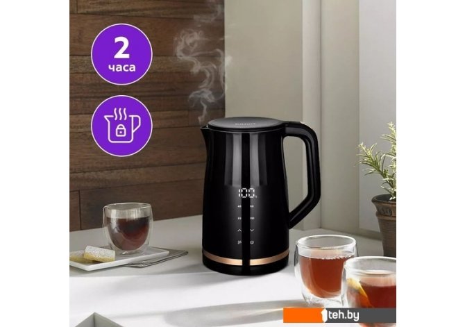 Информация | Электрический чайник КТ-6610 - отличное решение для ежедневного использования или особых моментов с родными и друзьями. Благодаря оригинальному дизайну он станет украшением вашей кухни. Вы можете выбрать 4 режима нагрева или самостоятельно настроить t°С от 40 до 95°С с шагом 5 °С. Это крайне удобно для правильного заваривания разных сортов чая. Управление сенсорное, LED-дисплей показывает текущую t°С или заданную t°С нагрева. Чайник оснащён функцией поддержания t °С в течение 2 ч на заданном уровне. Температура задаётся либо кнопками выбора: 40, 60, 80 или 100°С, либо с помощью кнопок “Больше” или “Меньше” на панели управления. Горлышко большого диаметра и широко открывающаяся крышка позволяют легко наполнять водой, а также чистить чайник. Отметка максимального уровня воды располагается на внутренней поверхности прибора. Изнутри крышка и корпус выполнены из нержавеющей стали. Чайник имеет широкий носик, который даёт хорошую струю воды без брызг. Ручка пластиковая, не нагревается и удобно лежит в руке. Подставка с центральным контактом даёт возможность располагать на ней чайник в любом положении, обеспечивая вращение на 360°. При закипании чайник автоматически отключается. Прибор имеет защиту от перегрева и от включения без воды. На дне подставки имеется отсек для хранения шнура, чтобы его излишки не мешались на столе. |