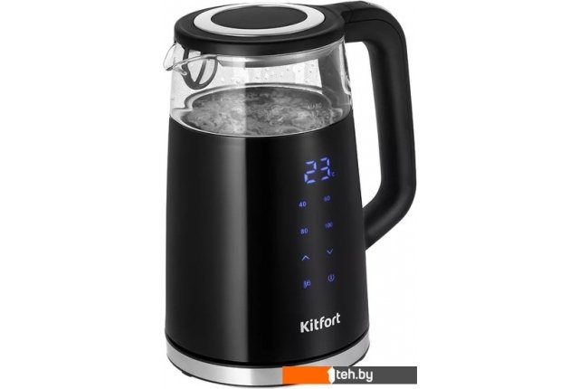 | Информация | Электрический чайник Kitfort КТ-6611 может не только вскипятить воду, но и нагреть её до температуры от 40 до 95°C. Ёмкость чайника 1,7 литров: этого хватит, чтобы приготовить горячие напитки на большую семью. На чайнике расположена панель управления и LED-дисплей. На дисплее отображается текущая температура воды. Вы можете настроить температуру от 40 до 100°C или выбрать режим кнопками «40», «60», «80» или «100» градусов. КТ-6611 имеет большое горлышко, что облегчает доступ внутрь при мытье. В носике чайника расположен съёмный фильтр, который задерживает частички накипи и предотвращает их попадание в чашку. Чайник оснащён функцией поддержания температуры в течение 2 часов с выбором температуры от 40 до 95°C с шагом 5°C. Температура воды контролируется встроенным в дно чайника термодатчиком. Подставка с центральным контактом даёт возможность располагать на ней чайник в любом положении, обеспечивая вращение на 360°. На дне подставки имеется отсек для хранения шнура, чтобы излишки шнура не мешали на столе. Полный чайник закипает примерно за 6 минут. Прибор имеет защиту от перегрева и от включения без воды. При включении без воды чайник нагревается и отключается. |