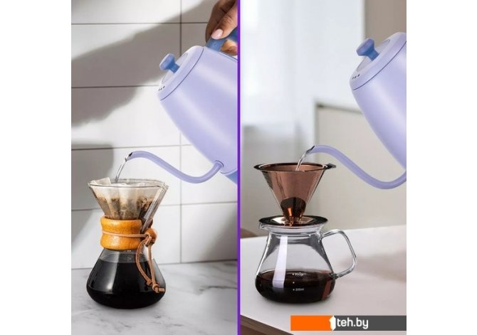 | Информация | ? Чайник KT-6613 предназначен для кипячения воды и приготовления кофе способами кемекс и пуровер. Контролировать пролив воды с помощью обычного чайника неудобно из-за широкого носика, а длинный изогнутый носик КТ-6613 поможет вам сделать идеальный напиток. ? Прибор может нагревать воду до температуры 40, 60, 80, 90 или 100°С. Это очень удобно для заваривания различных сортов чая: чёрный, зелёный, белый, улун, а также для приготовления кофе. Индикатор указывает на выбранный температурный режим. ? Длинный носик формирует тонкий и ровный поток воды, что является важным условием для приготовления кофе в кемексе или пуровере. Благодаря тонкому носику вы можете постепенно добавлять воду в кофе, добиваясь равномерной экстракции и раскрывая вкус кофе. ? После нагрева или кипячения чайник может поддерживать температуру воды в течение 2 часов. Для включения этого режима достаточно нажать на соответствующую кнопку на панели управления. Всё это время будет гореть световой индикатор. ? У чайника КТ-6613 ёмкостью 1 л полностью съёмная крышка, что облегчает процесс добавления воды и очистки. Мерная шкала размещена на внутренней части чайника. Ручка у прибора пластиковая. Она не нагревается и удобно лежит в руке. ? Подставка с центральным контактом даёт возможность располагать на ней чайник в любом положении, обеспечивая вращение на 360°. Снизу имеется отсек для хранения шнура, в который можно смотать излишки, чтобы он не мешал на столе. ? КТ-6613 выключается автоматически, когда вода закипела. Он имеет защиту от перегрева и включения без воды. |