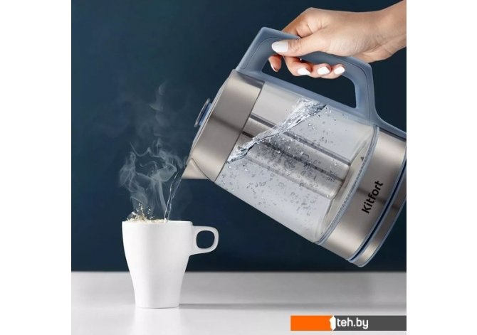 | Информация | Готов к тёплым вечерам! Электрический чайник КТ-6117 может не только вскипятить воду, но и нагреть её до температуры от 40 до 90 °С. Возможность выбрать температуру нагрева в сочетании с встроенным заварочным фильтром позволяют заваривать любимые сорта чая прямо в чайнике. Удобное управление На ручке чайника расположена сенсорная панель управления с дисплеем. С её помощью вы можете задать температуру нагрева от 40 до 90 °С. На дисплее отображается текущая температура воды и температура нагрева. После нагрева температура поддерживается 2 ч. Удобство во всём! Съёмная крышка и широкое горлышко чайника облегчают доступ внутрь при его мойке и во время удаления накипи. Форма носика позволяет метко наливать воду независимо от количества воды в чайнике. Фильтр внутри носика предотвращает поступление накипи в чашку. Стильная подсветка чайника Световой индикатор горит разными цветами в зависимости от температуры воды: до 50 °С –белый; 50 °С – оранжевый; 60 °С – голубой; 70 °С – зелёный, 80 °С – синий, 90 °С – фиолетовый и от 95 °С – красный. Съёмный фильтр для заваривания чая Различные сорта чая (зелёный, чёрный, белый, улун, травяной) можно заваривать непосредственно в самом чайнике, пользуясь фильтром. Он крепится к крышке и легко моется после использования. Вместительный чайник! Корпус выполнен из стекла, пластика и метала. Дно из метала, а крышка из сочетания пластмассы и нержавеющей стали. Мерная шкала нанесена на стеклянную колбу. Ёмкости 1,7 л хватит, чтобы заварить чай или вскипятить воду на большую семью! |