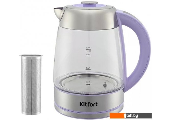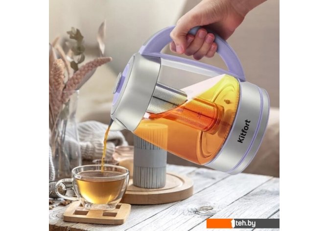 Информация | Дарит тепло! Электрический чайник с электронным терморегулятором Kitfort КТ-6624 может не только вскипятить воду, но и нагреть её до заданной температуры. Полный чайник закипает примерно за 5 минут. Ёмкость чайника 1,7 л. Сенсорная панель управления На ручке прибора расположена панель управления и LED-дисплей. На дисплее отображается текущая температура воды в чайнике, а при установке температуры — температура нагрева воды. Температура воды на дисплее отображается постоянно, что очень удобно. Раскройте вкус и аромат! Вы можете настроить температуру воды в диапазоне от 40 до 90 °С с шагом 10 °С, что очень удобно при заваривании различных сортов чая. Съёмный заварочный фильтр В комплекте к чайнику идёт съёмный чаезаварочный механизм. Вам нужно только засыпать чайные листья в фильтр, залить воду и выбрать температуру нагрева для данного сорта чая. Поддержание температуры в течение 2 часов Чайник также оснащён функцией поддержания температуры в течение 2 часов. Температура воды контролируется встроенным в дно чайника термодатчиком. Качественные материалы В носике чайника расположен фильтр, который задерживает частички накипи и предотвращает их попадание в чашку. Корпус чайника выполнен из сочетания стекла, нержавеющей стали и пластика. Без лишних проводов Подставка с центральным контактом дает возможность располагать на ней чайник в любом положении, обеспечивая вращение на 360°. Снизу подставки расположен отсек для хранения шнура, чтобы шнур не мешал на столе. Цвет настроения При включении чайника загорается подсветка, которая является индикатором работы и одновременно подсвечивает воду в приборе. Цвет подсветки меняется в зависимости от температуры воды во время нагрева. |