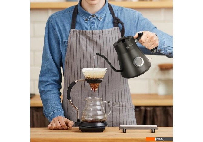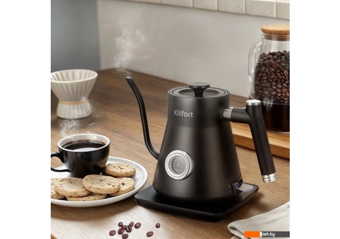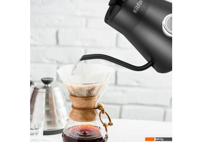 | Информация | Ваш идеальный напиток каждый день! Чайник Kitfort КТ-6760 создан для приготовления кофе в кемексе и пуровере. Изогнутый носик обеспечивает равномерное поступление воды, что важно для идеального напитка. А благодаря мощности в 1200 Вт, он подходит для домов со старой проводкой. Чайник для варки кофе Kitfort КТ-6760 - фото 3 Комфорт в деталях Обычные чайники с широким носиком не позволяют точно контролировать пролив воды с нужной скоростью, что приводит к неполному раскрытию вкуса и аромата кофе. Тонкий носик позволяет аккуратно и постепенно добавлять воду, обеспечивая равномерную экстракцию. Удобная конструкция Чайник изготовлен из нержавеющей стали, обеспечивая его прочность и долговечность. Внутренняя поверхность чайника также выполнена из металла, что исключает возможность контакта воды с пластиком. Крышка чайника съёмная, с отверстиями для выхода пара. Точная температура для вашего кофе! Биметаллический термометр, расположенный на корпусе чайника, помогает контролировать температуру воды при кипячении, что удобно при приготовлении кофе. Для корректной работы термометра чайник должен быть наполнен водой выше минимального уровня. Защита от перегрева Чайник KT-6760 обеспечивает безопасность благодаря автоотключению при закипании и защите от перегрева. Специальный канал для пара реагирует на температуру и отключает чайник, позволяя наслаждаться горячей водой без лишних хлопот. Скрытый нагревательный элемент Нагревательный элемент чайника скрыт за металлической пластиной из нержавеющей стали, защищая его от прямого контакта с водой и предотвращая образование накипи. Такая конструкция также облегчает чистку и снижает уровень шума при нагреве. Сплошные преимущества! Подставка с центральным контактом даёт возможность вращать чайник на 360 градусов и устанавливать его в любом удобном положении. В нижней части подставки имеется отсек для хранения шнура, что позволяет аккуратно сматывать излишки кабеля. |