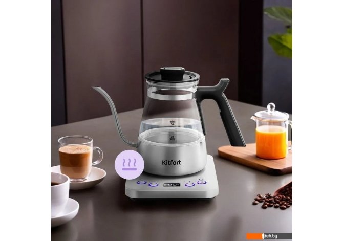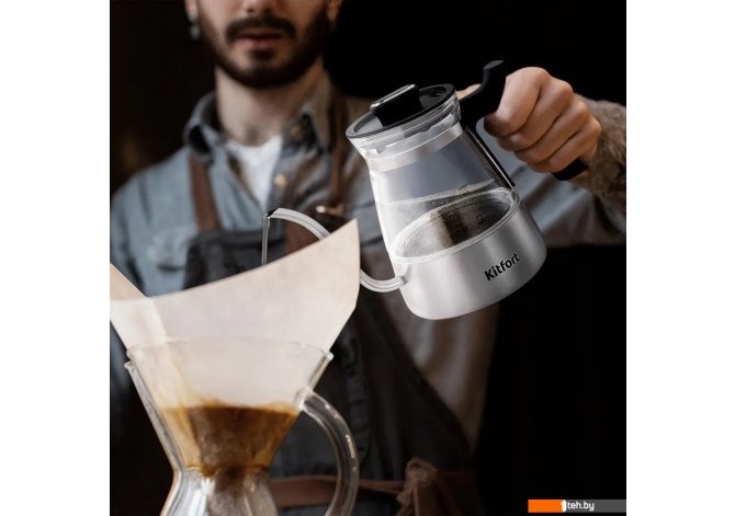 | Информация | - Чайник для варки кофе Kitfort KT-8707 — это стильное и функциональное устройство, созданное специально для ценителей кофе и чая. Благодаря тонкому носику он идеально подходит для приготовления кофе методами кемекс или пуровер, обеспечивая аккуратную подачу воды и равномерную экстракцию вкуса. Корпус выполнен из сочетания нержавеющей стали, стекла и пластика, а удобная пластиковая ручка не нагревается. - Модель оснащена терморегулятором с возможностью выбора температуры нагрева воды в диапазоне 50 - 100 °C с шагом 5 °C. Управление осуществляется через электронную панель с LED-дисплеем, где отображается текущая и заданная температура. Также предусмотрена функция поддержания температуры воды в течение часа и таймер отложенного старта. - Объем чайника составляет 0.8 литра, мощность — до 1300 Вт, что позволяет вскипятить воду всего за 5 минут. За безопасность отвечает автоматическое отключение при закипании, а также защита от включения без воды. Нагревательный элемент скрыт и изолирован металлической пластиной, что снижает образование накипи и уменьшает шум во время работы. - Чайник прост в уходе благодаря съемной крышке и гладким внутренним поверхностям. Внешний уровень воды легко контролируется благодаря прозрачным стенкам корпуса. KT-8707 сочетает в себе современный дизайн, продуманную эргономику и широкий набор функций, делая его отличным выбором для дома и офиса. |