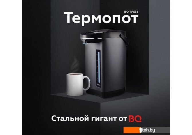 | Информация | Чаепитие по щелчку Объем термопота составляет 6.5 литра, что эквивалентно сразу трем электрическим чайникам. Вскипятить воду и устроить семейное чаепитие отныне не составит никакого труда, ведь полученного кипятка хватит на всех! Насладитесь чашечкой согревающего напитка в кругу ваших близких, друзей и соседей! В курсе «текучих» событий На выбор доступны 5 температурных режимов: 45°C, 55°C, 65°C, 85°C, 95°C. Подогреть воду до комфортной температуры или довести ее до кипения – все это не составит труда, если воспользоваться удобной панелью управления в верхней части прибора. Согреет ваше сердце Скрытый нагревательный элемент мощностью 1450 Вт – вдвое больше, чем у обычных моделей – обеспечит быстрый подогрев жидкости в колбе, благодаря чему вам больше не придется сидеть с кружкой в ожидании закипания воды. Таким образом, с BQ TP536 у вас дома всегда будет горячая вода для приготовления любимых напитков. |