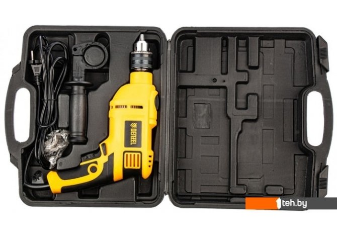 | Комплектация | - Дрель электрическая ударная;- Ключ для патрона;- Рукоятка боковая;- Ограничитель глубины сверления;- Комплект запасных угольных щеток;- Инструкция по эксплуатации и гарантийный талон. |