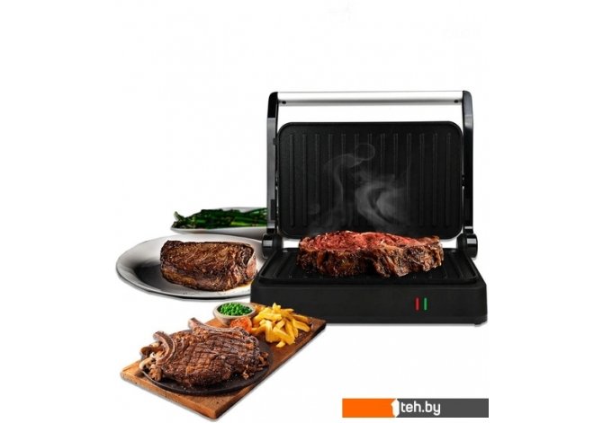 | Информация | ? Электрогриль GFGRIL GF-012 – мощный и компактный! ? Электрический гриль GFGRIL GF-012 идеально подходит для приготовления сочных стейков из мяса и рыбы, горячих сэндвичей, нежных овощей-гриль и многих других полезных и вкусных блюд. ? Данный гриль создан для тех, кто стремиться питаться правильно, но не хочет отказывать себе во вкусных блюдах. ? Антипригарное покрытие панелей электрогриля позволит готовить любимые блюда без добавления масла, а лишний жир, который вытапливается из продуктов во время приготовления, стекает по бороздкам панелей в специальный съемный лоток, который крепится в нижней части гриля. ? Наклон поверхности гриля способствует быстрому стеканию жира и лишней влаги, за счет чего продукты не варятся в собственном соку, а поджариваются до румяной корочки. ? Размер панелей электрического гриля подходит для приготовления 3-х небольших кусков мяса. ? Крышка электрогриля подстраивается под высоту продуктов. Индикаторы включения и нагрева на передней панели. ? Электрогриль GFGRIL GF-012 - это компактные размеры и высокая мощность 1200 Вт обеспечивают быстрый нагрев и равномерное приготовление продуктов. |