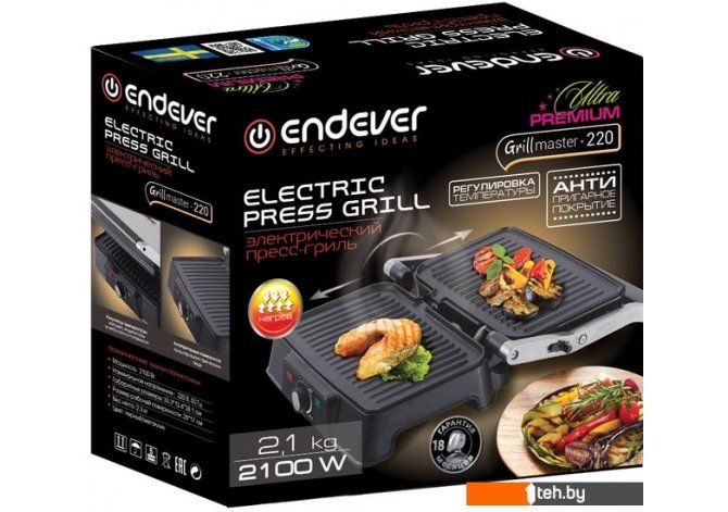 Фотографии, описание и технические характеристики модели электрогриля Endever Grillmaster 220 взяты из открытых источников, официального сайта производителя или представительства Endever в Республике Беларусь.