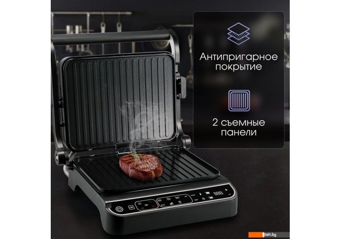 | Информация | - Контактный гриль Grillmeister ZEG-934 позволяет готовить разнообразные блюда без масла. Вы сможете легко приготовить сочные стейки, нежную рыбу, полезные овощи-гриль, котлеты для бургеров, хрустящие тосты и сэндвичи, а также панини, шаурму и буррито с различными начинками. - Этот гриль оснащен сенсорным управлением и 7 автоматическими программами. Вам нужно лишь выбрать тип продукта, а температура и время приготовления будут установлены автоматически. - С мощностью 2000 Вт гриль обеспечивает быстрое и качественное приготовление. Жарочные панели имеют толщину 1.7 см и отличную теплопроводность, а их антипригарное покрытие предотвращает подгорание и создает румяную корочку. Рифленая поверхность придаёт блюдам аппетитные полоски. Уход за панелями прост: они легко снимаются и могут мыться под проточной водой или в посудомоечной машине. - Регулируемая высота верхней крышки позволяет готовить как тонкие стейки, так и более крупные куски мяса. - В ручном режиме гриль можно открыть на 180 градусов, превращая его в большую жарочную поверхность для барбекю. - Выбор программы осуществляется с помощью удобного LCD дисплея. - Для тех, кто следит за питанием, Grillmeister ZEG-934 станет настоящей находкой! Приготовленная на гриле пища получается вкусной и диетической, так как не используется масло, а излишки жира собираются во внутреннем поддоне. Это снижает калорийность и содержание холестерина. Панели имеют небольшой уклон, что позволяет жиру стекать в поддон, а не растекаться вокруг прибора. После использования поддон легко извлекается и моется, в том числе в посудомоечной машине. - Приготовление на гриле Grillmeister ZEG-934 значительно разнообразит ваше меню, сделав его более вкусным и полезным. |
