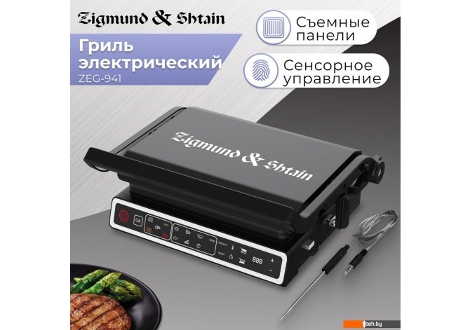 Фотографии, описание и технические характеристики модели электрогриля Zigmund & Shtain Grillmeister ZEG-941 взяты из открытых источников, официального сайта производителя или представительства Zigmund & Shtain в Республике Беларусь.