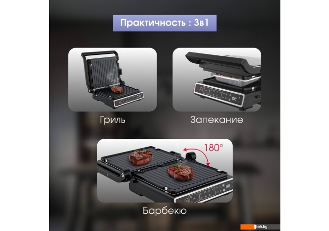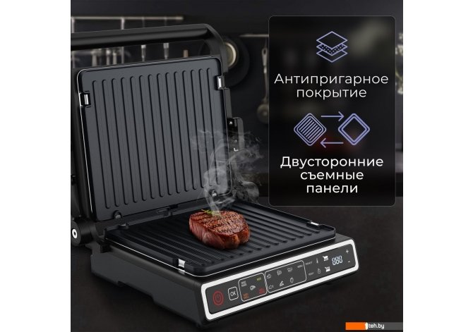 | Информация | - Контактный гриль Grillmeister ZEG-941 позволяет готовить разнообразные блюда без масла. Вы сможете легко приготовить сочные стейки, нежную рыбу, полезные овощи-гриль, котлеты для бургеров, хрустящие тосты и сэндвичи, а также панини, шаурму и буррито с различными начинками. - Этот гриль оснащен сенсорным управлением и 7 автоматическими программами. Вам нужно лишь выбрать тип продукта, а температура и время приготовления будут установлены автоматически. - С мощностью 2000 Вт гриль обеспечивает быстрое и качественное приготовление. Жарочные панели имеют толщину 1.7 см и отличную теплопроводность, а их антипригарное покрытие предотвращает подгорание и создает румяную корочку. Рифленая поверхность придаёт блюдам аппетитные полоски. Уход за панелями прост: они легко снимаются и моются под проточной водой или в посудомоечной машине. - Высоту верхней крышки можно регулировать, что делает гриль универсальным для жарки как тонких стейков, так и крупных кусков мяса. - В ручном режиме гриль можно открыть на 180 градусов, превращая его в большую жарочную поверхность – барбекю. - Выбор программы осуществляется с помощью удобного LCD дисплея. - Для тех, кто следит за питанием, Grillmeister ZEG-941 станет настоящей находкой! Приготовленная на гриле пища получается вкусной и диетической, так как не используется масло, а излишки жира собираются во внутреннем поддоне. Это снижает калорийность и содержание холестерина. Панели имеют уклон, что позволяет жиру стекать в поддон, а не растекаться вокруг прибора. После использования поддон легко извлекается и моется, в том числе в посудомоечной машине. - Приготовление на гриле Grillmeister ZEG-941 значительно разнообразит ваше меню, сделав его более вкусным и полезным. |