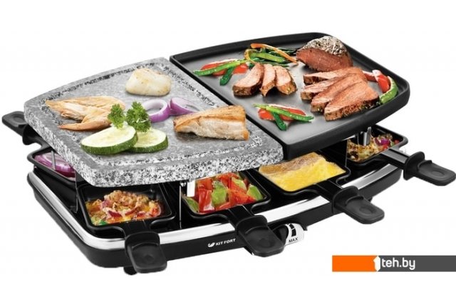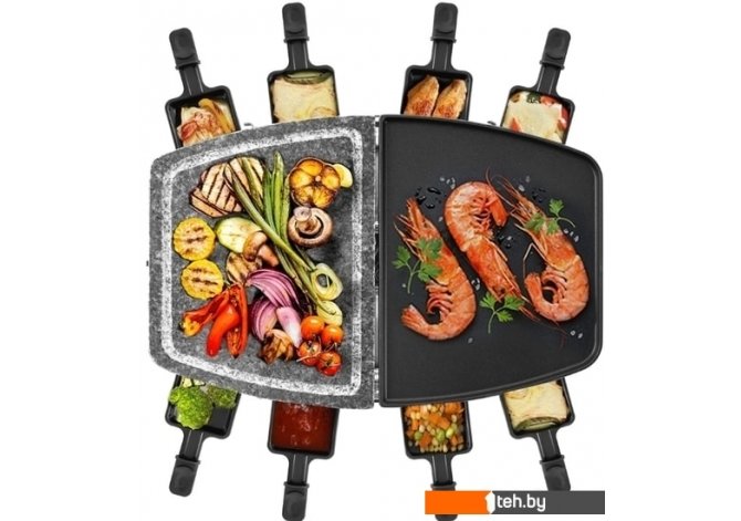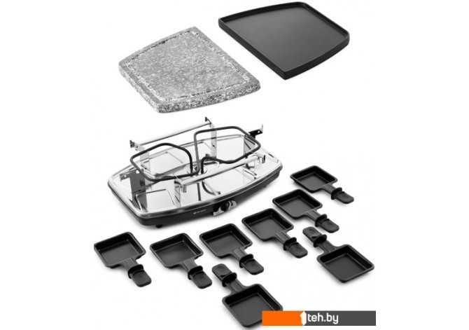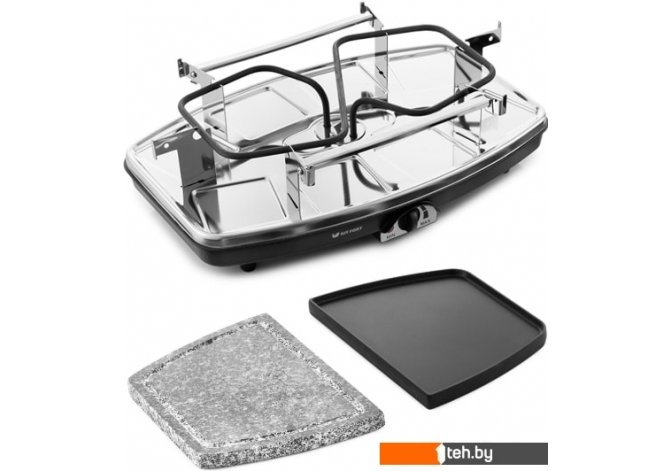 | Комплектация | Раклетница - 1 штКаменная плита - 1 штПанель с антипригарным покрытием - 1 штПорционные сковородки с антипригарным покрытием - 8 штРуководство по эксплуатации - 1 штГарантийный талон - 1 шт |