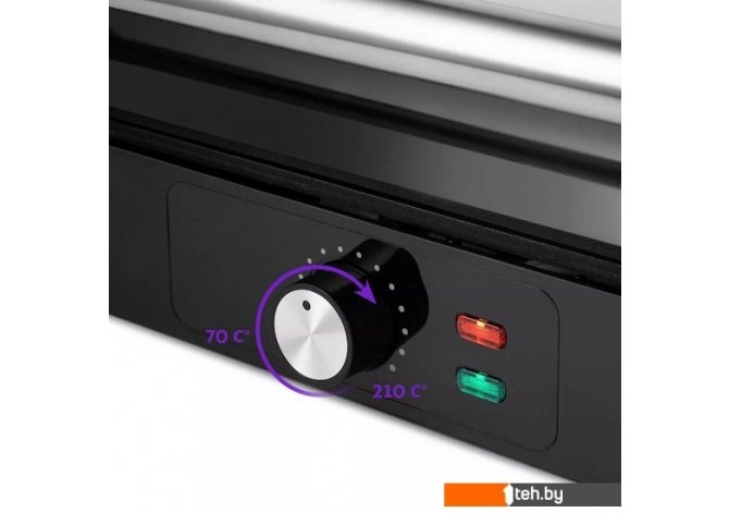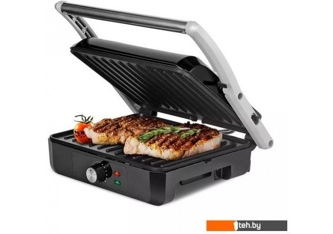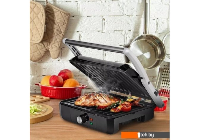 | Информация | Электрогриль КТ-3633 - это устройство для приготовления мясо, рыба, овощи, сосиски, бутерброды, панини, сэндвичи, тосты и многие другие. Ребристая поверхность и высокая температура позволяют удалить излишки жира из продуктов, делая их более здоровыми. Регулятор температуры – это ручка термостата. Термостат обеспечивает плавность регулировки, а также функцию поддержания температуры. Вокруг регулятора нанесена шкала: температура 70-90 °С соответствует началу шкалы, 190-210 °С — концу. Конструкция гриля позволяет готовить в двух режимах. В двухстороннем режиме гриль закрывается крышкой, и продукты готовятся одновременно с двух сторон. В одностороннем режиме крышка гриля откидывается на 180°, и гриль превращается в большую жаровню. Нагревательные панели изготовлены из алюминия с нанесённым антипригарным покрытием. Ребристая поверхность способствует появлению на них характерного «полосатого» рисунка. Это позволяет использовать минимум масла в процессе готовки. Весь лишний жир и сок из блюд попадёт в съёмный поддон. Просто выньте поддон и помойте его с моющим средством! Также у прибора установлены прорезиненные ножки, которые не дают прибору скользить по столу во время готовки. Антипригарное покрытие позволяет готовить с минимальным количеством масла или без него. Лопатка для очистки панелей из комплекта поможет вам легко удалить остатки масла и жира с панелей после приготовления. Электрогриль КТ-3633 позволяет приготовить аппетитные и сочные блюда с минимальными затратами времени и усилий. Он станет отличным помощником в приготовлении завтрака, обеда или ужина для всей семьи. Длина шнура: 0,6 м. |