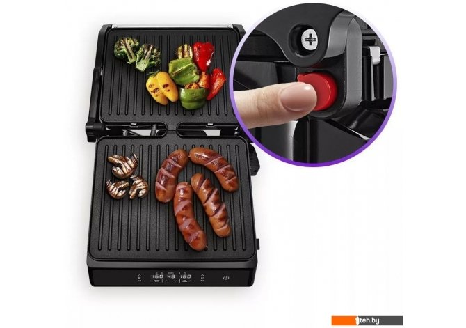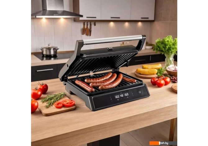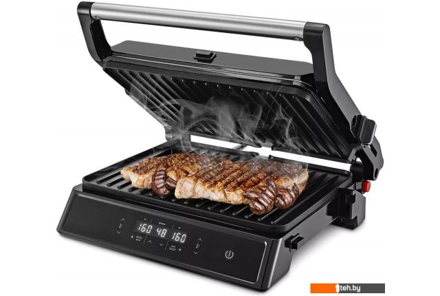 | Информация | - Электрогриль КТ-3682 идеально подходит для приготовления мяса, рыбы, овощей, сосисок, бутербродов, панини, сэндвичей, гренок, тостов и других блюд. Ребристая поверхность и высокая температура помогают удалить излишки жира из продуктов. - Устройство оснащено дисплеем с необходимой информацией. Кнопки позволяют включать/выключать нагрев, регулировать температуру от 60 до 230°C и устанавливать таймер от 1 до 99 минут. Панели нагреваются до нужной температуры, после чего индикатор гаснет. - Кнопка «180°» позволяет разложить гриль и использовать его в одностороннем режиме. Чтобы разложить гриль, нажмите на кнопку и, удерживая её, откройте крышку гриля на 180°. - Панели гриля покрыты антипригарным покрытием, что позволяет готовить с минимальным количеством масла и облегчает процесс чистки. Панели этого гриля съемные. - Специальный фиксатор сбоку гриля удерживает крышку в закрытом состоянии и позволяет удерживать крышку в приоткрытом положении. Этот режим приготовления полезен при готовке продуктов, которые могут потерять форму из-за давления верхней крышки. |
