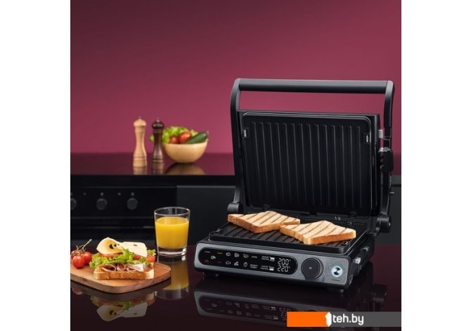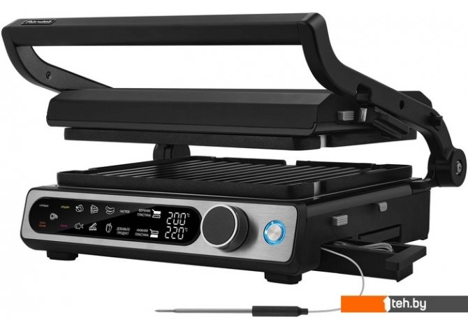 | Информация | ? Гриль-пресс RDE-1700 позволяет легко готовить стейки, горячие сэндвичи, курицу, рыбу, бекон, сосиски и овощи. Максимальная мощность устройства - 2000 Вт. ? Удобный LED-дисплей позволяет выбрать одну из десяти автоматических программ приготовления и установить желаемую степень прожарки стейка. Температура регулируется от 80 до 230°С. ? Раздельная регулировка нагрева и времени приготовления для нижней и верхней пластин, а также наличие термощупа для контроля степени готовности стейка. ? Возможность жарить продукты как в закрытом, так и в открытом гриле. Верхняя часть способна отклоняться на 180°. ? Двухсторонние пластины с надежным антипригарным покрытием для красивой ровной корочки. Съемный поддон для жира и возможность мыть в посудомоечной машине. |