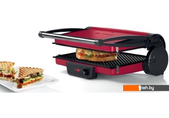 Фотографии, описание и технические характеристики модели электрогриля Bosch TCG4104 взяты из открытых источников, официального сайта производителя или представительства Bosch в Республике Беларусь.