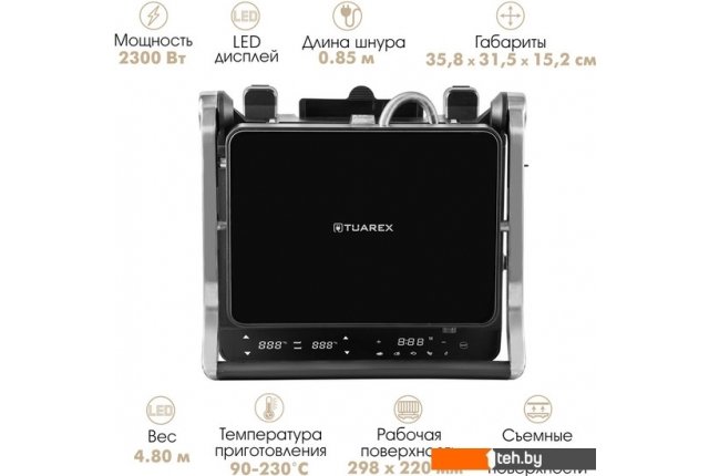 Фотографии, описание и технические характеристики модели электрогриля Tuarex TK-5002 взяты из открытых источников, официального сайта производителя или представительства Tuarex в Республике Беларусь.